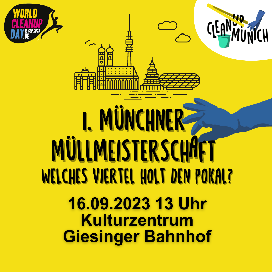 am 16. September, pünktlich zum World Cleanup Day, rufen wir die 1. Münchner Müllmeisterschaft aus! Sammelt mit und helft uns, Giesing zum Cleanup-Champion zu machen!